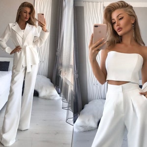 White Suit Women Three Piece Suit Rehearsal Dinner Outfit Etsy Canada